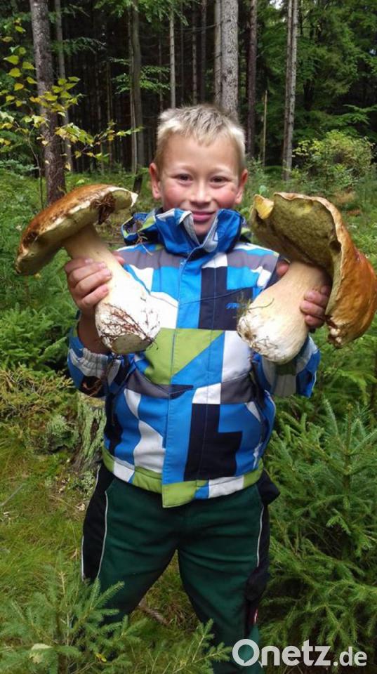 "Eigentlich haben wir ja nicht mehr geglaubt irgendwas zu finden", sagt Veronika Schleifenheimer aus Altglashütte. Doch am Samstag stolperten sie und ihr Sohn Samuel im Wald in der Nähe des Wohnorts über zwei gigantische Prachtexemplare von Steinpilz. Die Pilze sind jeweils etwa 24 Zentimeter hoch. Der eine wiegt 940 Gramm und der andere 800 Gramm. Gefunden hatte die riesigen Steinpilze Sohn Samuel: "Er ist natürlich sehr stolz", erzählt Veronika Schleifenheimer. "Wir sind eigentlich täglich Pilze sammeln", sagt die Mutter. "Wir sind immer mit den Hunden im Wald unterwegs." So große Pilze hat die Familie aus Altglashütte allerdings noch nie gefunden. Auch ihr Opa war total begeistert, erzählt Veronika Schleifenheimer. "Der hat die Steinpilze dann mit dem Traktor heimgefahren", sagt sie und lacht.
