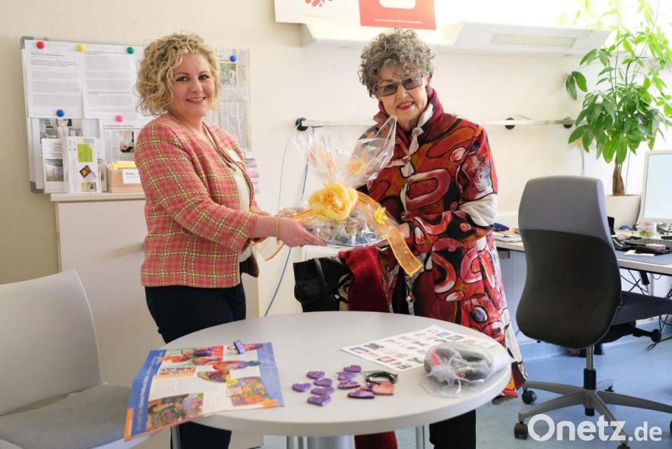 Prompt hat sie für die betroffenen Patienten 150 Herzanhänger, unter anderem in der Millefiori-Technik, gefertigt und an Annika Wawersig, der Koordinatorin der Integrativen Onkologie, überreicht. Dahinter steckt nach Angaben des Klinikums eine sehr aufwändige Arbeit – zahlreiche Rollen werden aus der Modelliermasse geformt, immer wieder umwickelt, mehrfach gerollt und dadurch verkleinert. So entsteht eine Vielfalt von Mustern. Die Patienten dürfen sich nun aus den individuell gestalteten Herzen eines aussuchen.
