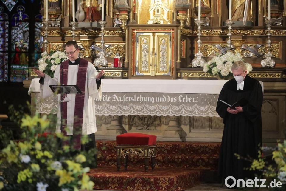 Die Stadt Amberg war dem Aufruf von Bundespräsident Frank-Walter Steinmeier gefolgt und gedachte wie viele Kommunen in Deutschland am vergangenen Sonntag der Toten der Pandemie. Mit einem fünfminütigen Glockenläuten begann am Sonntag um 17.30 Uhr die ökumenische Gedenkandacht mit Stadtpfarrer Thomas Helm und Pfarrer Joachim von Kölichen in der Basilika St. Martin.