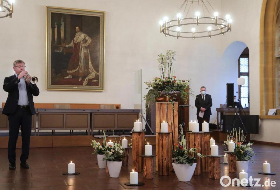 Sowohl die Andacht als auch die anschließende Gedenkfeier im Großen Rathaussaal wurden live über die YouTube-Kanäle der Pfarrei St. Martin bzw. der Stadt Amberg übertragen. Gemeinsam mit den Familien der Verstorbenen nahmen Oberbürgermeister Michael Cerny, seine beiden Stellvertreter und die Stadträte an der Gedenkfeier teil. Für die musikalische Umrahmung sorgte Bürgermeister Franz Badura an der Trompete. Neben Cerny sprachen mit Tanja Dandorfer und Dr. Berit Bouschery auch zwei Mitarbeiterinnen des Amberger Klinikums zur Trauergemeinde.