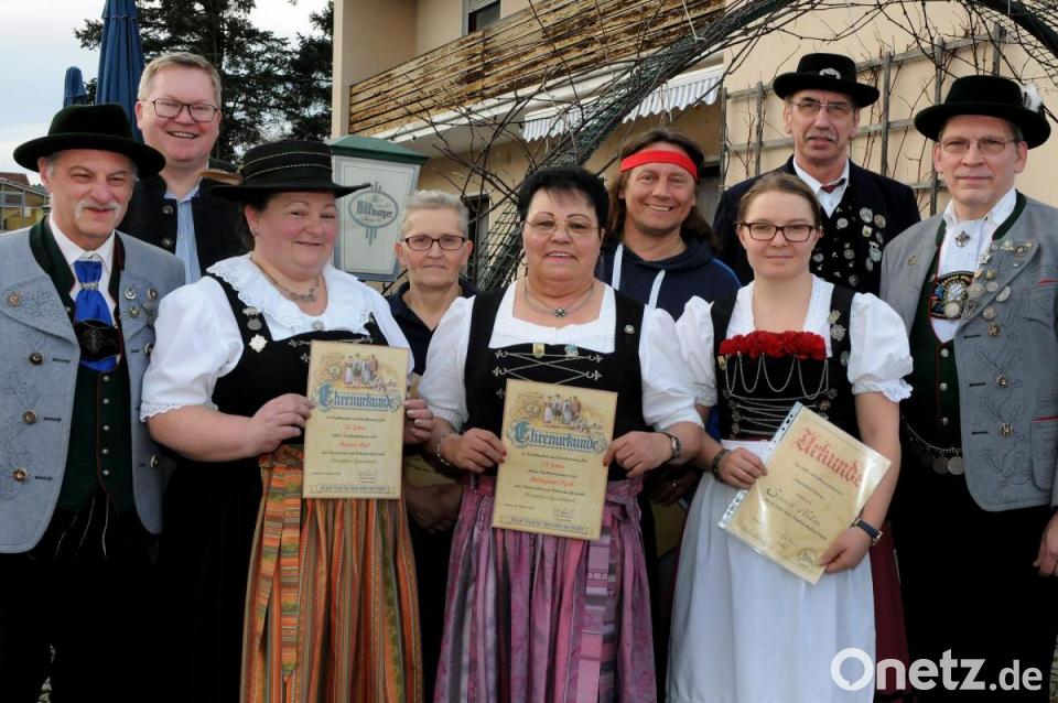 Im Mittelpunkt der Generalversammlung stand die Ehrung langjähriger Mitglieder. Seit zehn Jahren halten Patrick Schneider, Erika Urban und Karl-Heinz Rottmann dem Verein Hoamatland die Treue. Tragende Säulen seit 20 Jahren sind Marianne Otto, Nadine Schmidt und Klaudia Paulus. Alle bekamen eine Urkunde und Anstecknadel überreicht. Für 25 Jahre aktive Trachtenarbeit erhielten Hilde und Marion Pfab eine Urkunde sowie das Edelweiß-Abzeichen des Oberpfälzer Gauverbands.