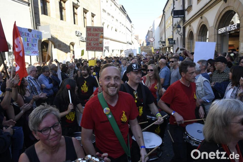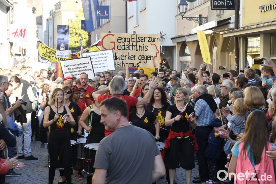 Drinnen im ACC füllt sich derweil das Parkett und die Tribüne. Nachdem die Polizei rund 750 Besucher gezählt hatte, ist aus Sicherheitsgründen Schluss. Zuvor hat Oberbürgermeister Michael Cerny auf dem Marktplatz ein Fest der Demokratie eröffnet. "Wir wollen hier einen Gegenpol setzen gegen alle Bestrebungen, die Menschen herabzuwürdigen." Bereits als das Fest am Nachmittag beginnt, wollen Hunderte Bürger dabei sein. Am Abend wächst das Publikum auf etwa 2000 Menschen an. Cerny betont, dass er "Riesenrespekt" vor dem habe, "was hier aufgezogen wurde". Acht Bands treten ohne Gage auf. Der Erlös wird gespendet. Mehr als 10 000 Euro kommen zusammen.