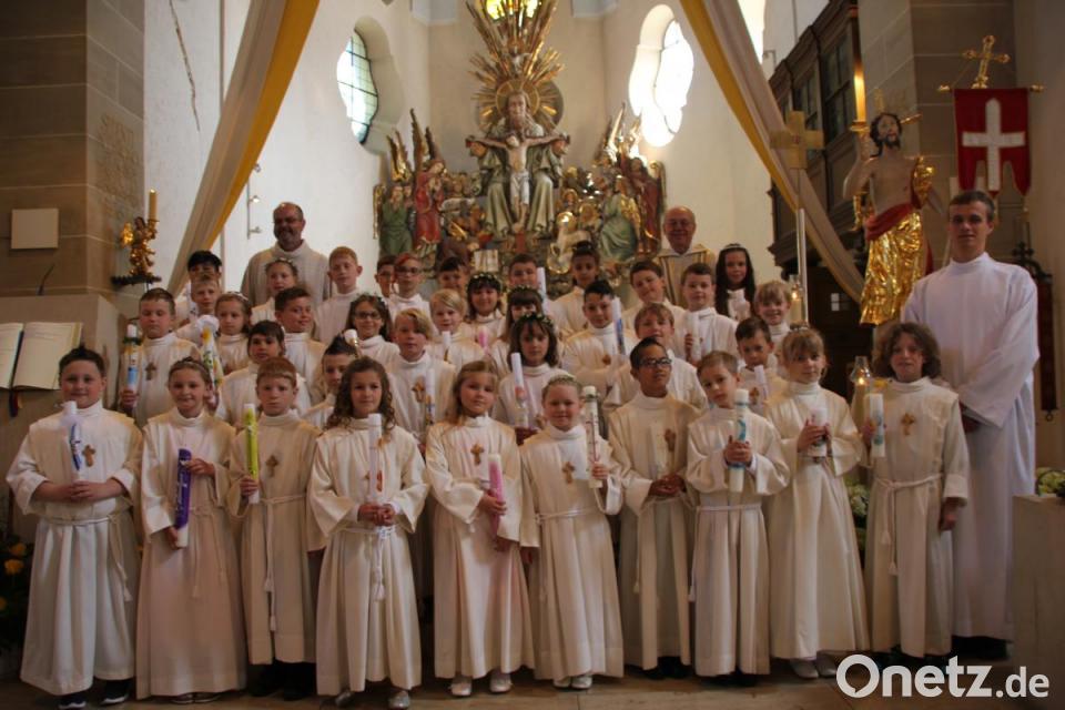 Pastoralpraktikant Severin Nüßl und Gemeindereferent Anton Rauch hatten mit den Drittklässlern das Sprechspiel einstudiert und diese intensiv auf ihre Erstkommunion vorbereitet. Neben dem Religionsunterricht waren auch die Tischgruppen, geleitet von Müttern, und verschiedene Gottesdienste wichtige Elemente in der Vorbereitungszeit.