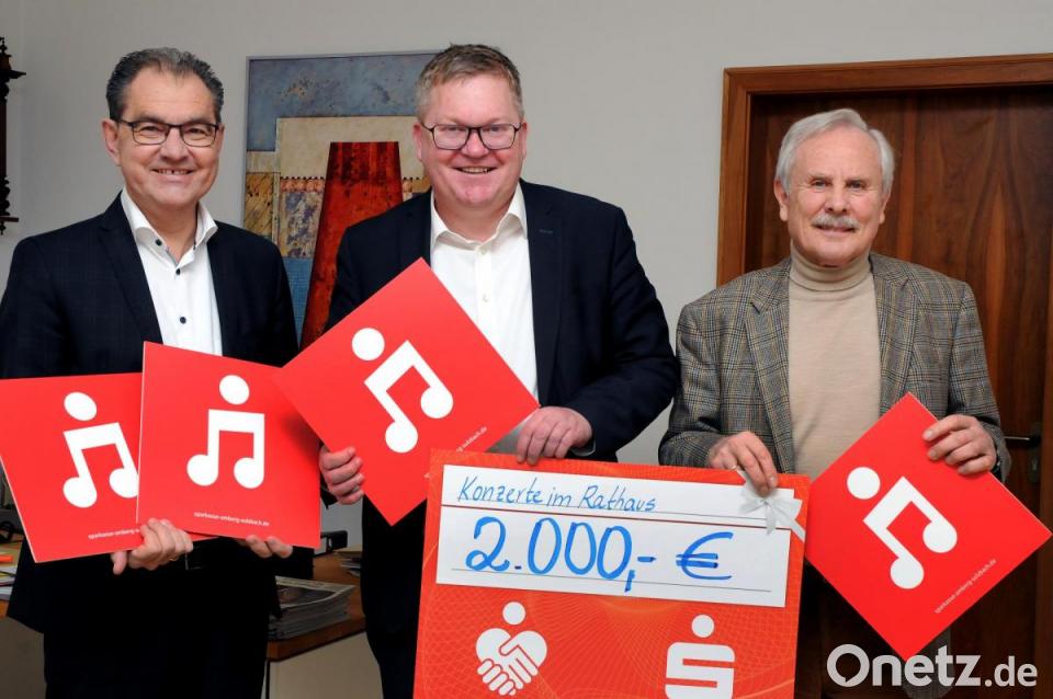 Beim Pressetermin im Büro des Oberbürgermeisters Michael Cerny sind sich alle einig: Kultur braucht Sponsoring. Deshalb öffneten die Sparkasse und die Freunde des Stadttheaters ihre Schatullen. Sparkassen-Vorstandsvorsitzender Dieter Meier und der Vorsitzende der Freunde des Stadttheaters, Norbert Fischer, spendeten jeweils 2000 Euro für die Rathauskonzerte. Wann die nächsten Veranstaltungen dieser Reihe stattfinden, die es seit 27 Jahren gibt, ist zur Stunde zwangsläufig noch offen.