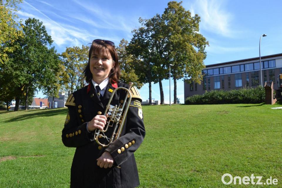 Vom Bodensee aus hat die Knappschaftskapelle Amberg Unterstützung bekommen. Michaela Krieg (50) ist von Ludwigshafen nach Amberg gezogen spielt in dem Orchester Trompete. Bei der Luftklangmeile ist sie eine der wenigen Frauen, die dieses Instrument bedienen.