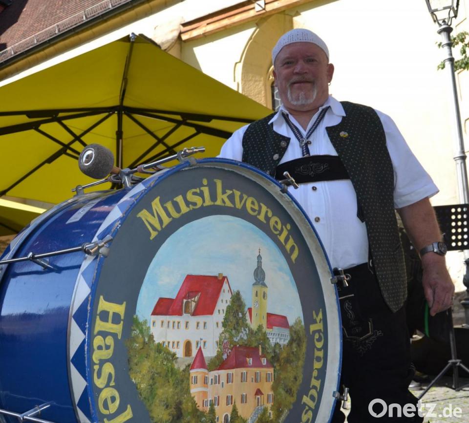 Herbert Schmidt schlägt beim Musikverein Haselmühl-Kümmersbruck die große Trommel – und nicht nur die. „Ich hab die Löffel mit dabei“, lacht der 62-Jährige. „Bei manchen Stücken hol ich mein Besteck heraus.“ Damit serviert der Schlagzeuger den Passanten an der Spitalkirche feinste Blasmusik-Begleitung.
