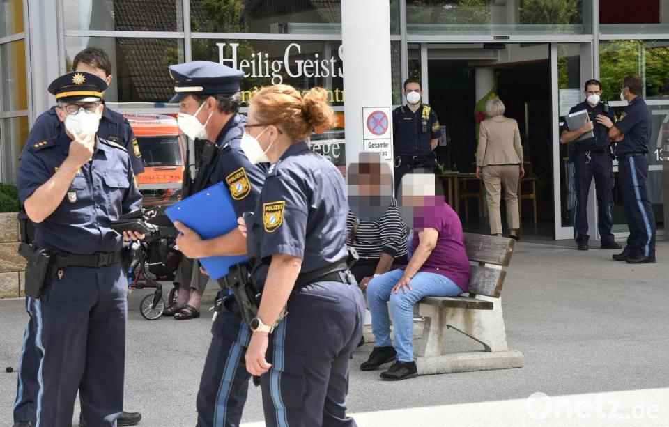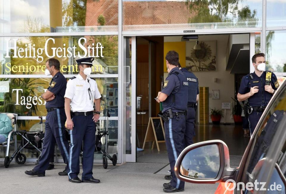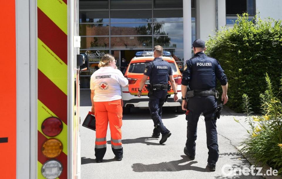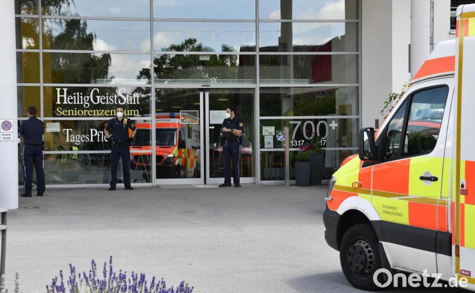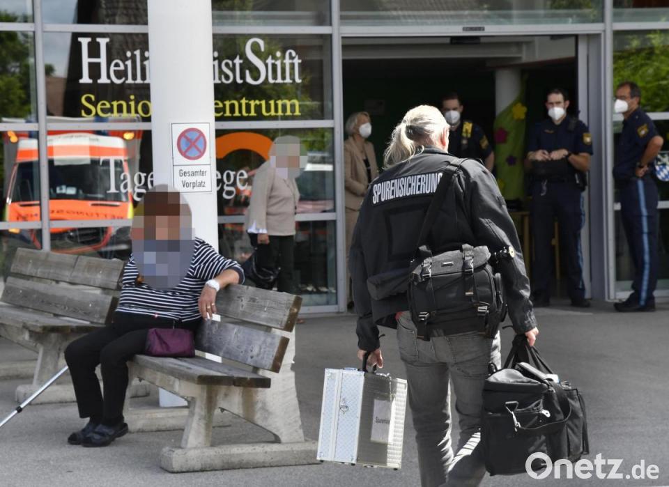 Zuckende Blaulichter, hin und her eilende Polizeibeamte zum Teil mit Maschinenpistolen bewaffnet und mit Spürhunden. Dazu Rettungssanitäter im Alarmmodus – vor einem Amberger Seniorenheim spielten sich am Montagmittag Szenen ab, die sofort auf ein Kapitalverbrechen schließen ließen. Und tatsächlich: Gegen 12.15 Uhr ging bei der Amberger Polizei die Meldung ein, dass in dem Altenheim ein Mann mit Stichverletzungen gefunden worden war.