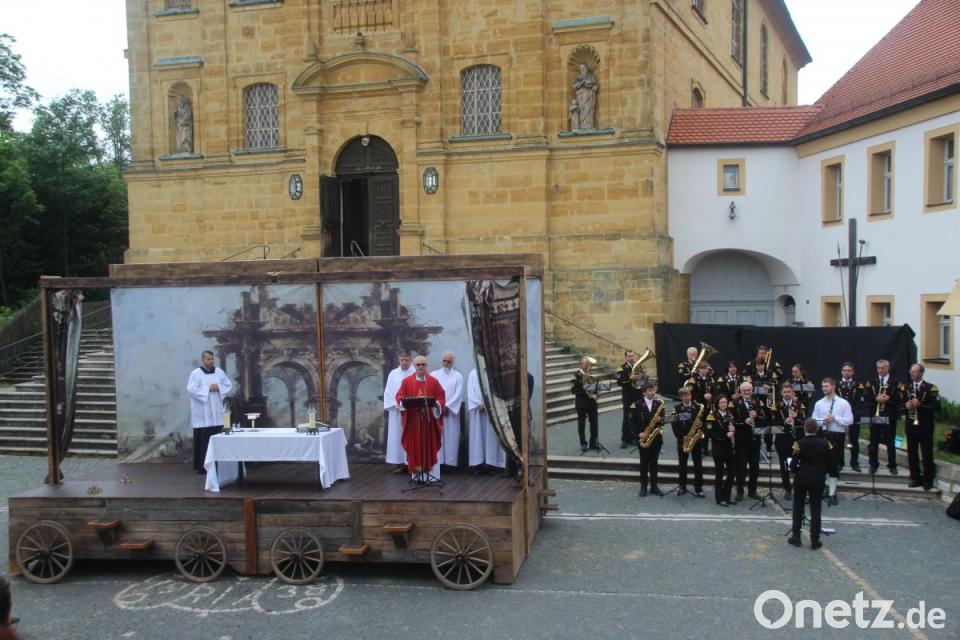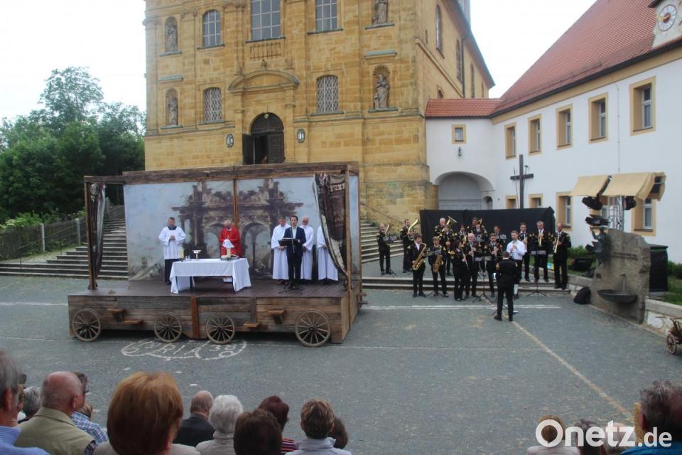 "Ich danke vor allem dem Team, aber auch dem begeisterten Publikum für die letzten Wochen", hieß Pater Wróbel die Gemeinde willkommen. Für die musikalische Umrahmung der Messe sorgte die Knappschaftskappelle. Vor fünf Jahren sei ihm gesagt worden, er solle nicht so lange predigen, sonst falle der Wagen auseinander. "Aber ich habe nachgesehen, er war danach noch ganz", erklärte Wróbel schmunzelnd. Dem Welttheater-Team sagte er: "Es ist unglaublich, welche Freude ihr mit eurem Spiel den Ambergern gebracht habt." Gedacht wurde der verstorbenen Mitglieder des Ensembles. So auch dem Komponisten des Stückes: Roger E. Boggasch. In ihren Fürbitten dankten die Produktionsleiter für das beeindruckende Werk und die vielen Talente. Sie baten aber auch darum, sich wieder mehr auf Gemeinschaft als auf Einzelinteressen zu besinnen. "Wir wollen mit diesem Gottesdienst ein Zeichen setzen und den Berg quasi wieder zurückgeben, nachdem wir in den letzten Wochen hier so viel Gastfreundschaft erfahren durften", sagte Brandelik abschließend. Nur an einem Ort wie diesem sei es möglich, "so viele Todsünden und Calvinisten ohne bleibende Schäden auftreten zu lassen".