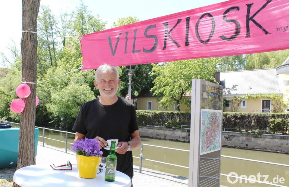 Schon vor Jahren setzte er sich als Vorsitzender der IG menschengerechte Stadt erfolgreich für den Erhalt der hier stehenden Kastanie und eine Verkehrsberuhigung ein. Seitdem wird die Schiffgasse gerne zum Spazierengehen und Flanieren genutzt – und ab sofort wohl auch dafür, sich einen lecke- ren Cappuccino oder ein kühles Bier zu gönnen. Das ist jetzt am Vils-Kiosk möglich.