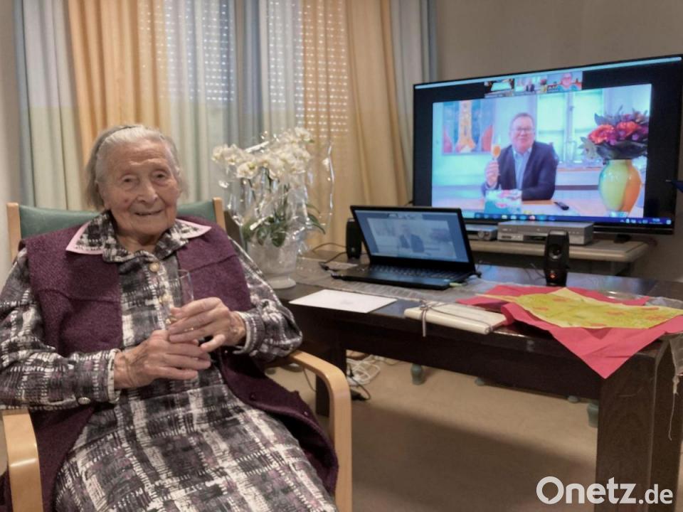 Möglich gemacht hatte dies der Leiter des Caritas-Altenheims Friedlandstraße, Carsten-Armin Jakimowicz. Er stellte dem Geburtstagskind für diesen besonderen Tag einen Laptop inklusive Wlan-Anbindung, einen großen Bildschirm und Lautsprecher zur Verfügung. Auch Cerny war bestens vorbereitet: Er hatte nicht nur die Geburtstagspräsente vorab in das Seniorenheim geschickt, sondern sich auch mit Glückwunschkarte, Blumen, Luftschlangen und einem Gläschen Sekt vor die Kamera gesetzt. Mit der 103-Jährigen stieß er virtuell an und nahm so persönlich "die erste Geburtstagsgratulation seit mehr als einem Jahr" vor.