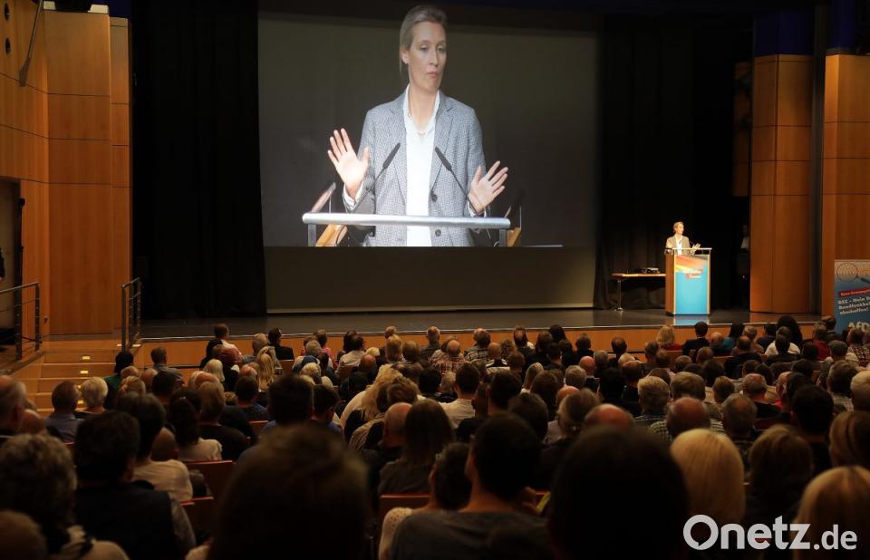 Alice Weidel trat im Amberger Kongresszentrum beim Wahlkampfabschluss der bayerischen AfD auf.
