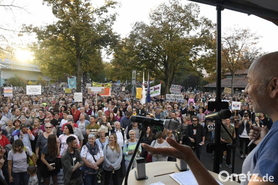 Der Protest war nicht zu übersehen und zu überhören: Rund 3000 Menschen haben am Freitagabend auf dem Platz vor dem Kongresszentrum gegen den dort stattfindenden Wahlkampfabschluss der bayerischen AfD protestiert.