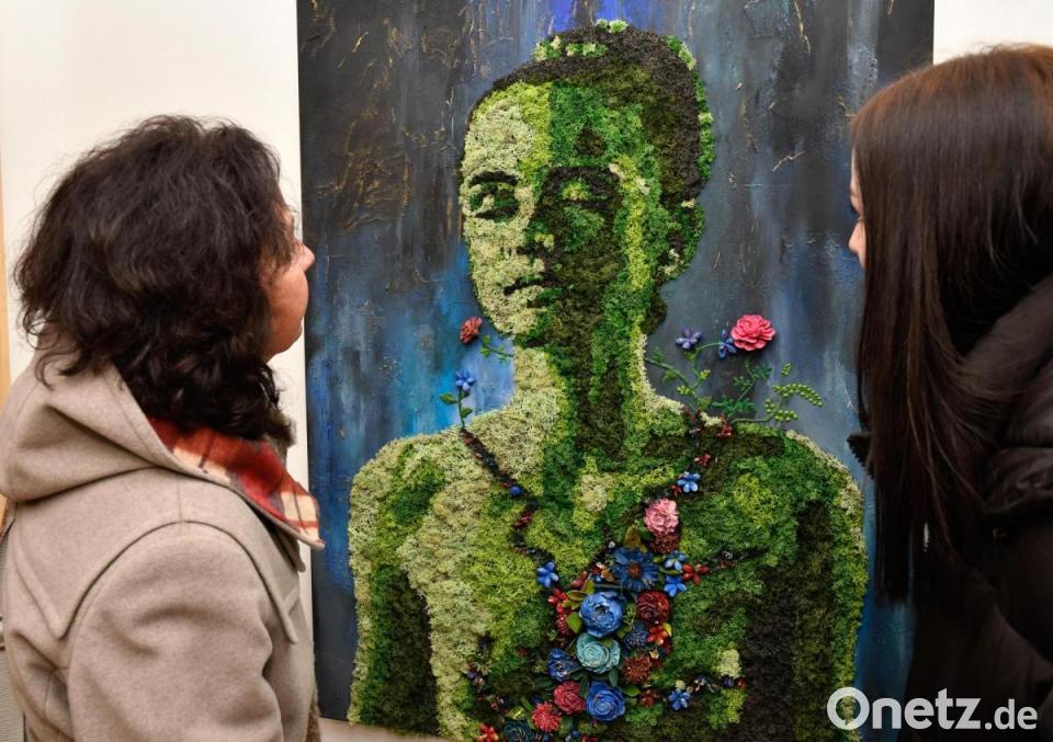 Publikumsmagnet in diesem Jahr bei der Vernissage war eindeutig der „Moos-Akt“ von Johanna Lehmeier, die erst seit wenigen Wochen offizielles Mitglied ist. Die Ambergerin, die hauptberuflich im Erziehungsbereich tätig ist, erdet sich durch die Erstellung von Moos- und Pflanzenkunst auf Leinwand. Durch die natürliche und unterschiedliche Farbgebung der getrockneten Landpflanzen erstellt Lehmeier Portraits mit perfekten Schattierungen, die sie vorher realistisch skizzierte. Lehmeiers Werke stllt sie auch bei Instragram aus unter jomoos_art.