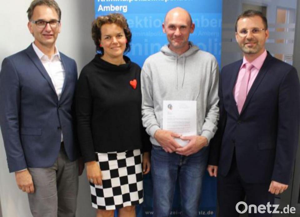 Gerhard Huf, der Leiter der Amberger Kriminalpolizei, zeichnete Bauer nun aus und überreichte ihm ein Dankschreiben sowie eine Geldprämie.