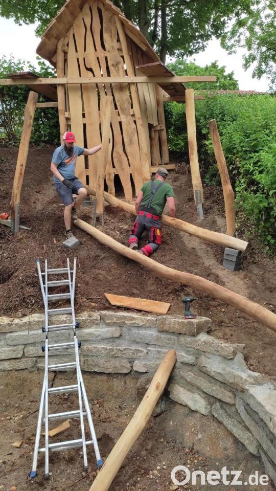 Die Planung des naturnahen Spielparadieses anhand eines vorher erstellten Nutzungskonzepts erfolgte nach den Anforderungen und Wünschen der Einrichtung. Pfarrer David Scherf, das Team der Kindertagesstätte um Brigitte Moser, Elternbeirat und Eltern sowie freiwillige Helfer haben dann binnen zwei Wochen das naturnahe Abenteuerland mit viel Kreativität und Ideenreichtum in einer großen Gemeinschaftsaktion unter Anleitung von spezialisierten Landschaftsbauer realisiert. Dabei entstanden zwei Bereiche, einer für die Krippenkinder, ein anderer für die Kindergartenkinder, sodass beide den Garten nun gemeinsam nutzen können.