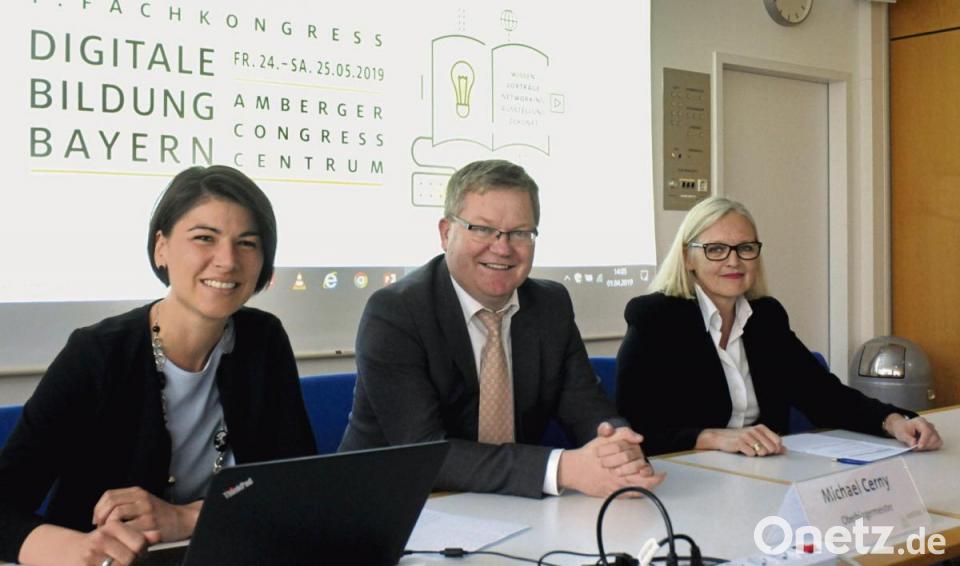 OB Michael Cerny stellte mit Petra Strobl, Vorstandsmitglied im Amberger Congress-Marketing, und Projektleiterin Kathrin Weigl die Veranstaltung vor. Zu diesem Kongress, der unter der Überschrift "Digitale Bildung Bayern" steht, erwarten die Veranstalter 400 bis 600 Teilnehmer aus ganz Bayern. "Die Rückmeldungen laufen schon ganz gut", berichtete Petra Strobl.