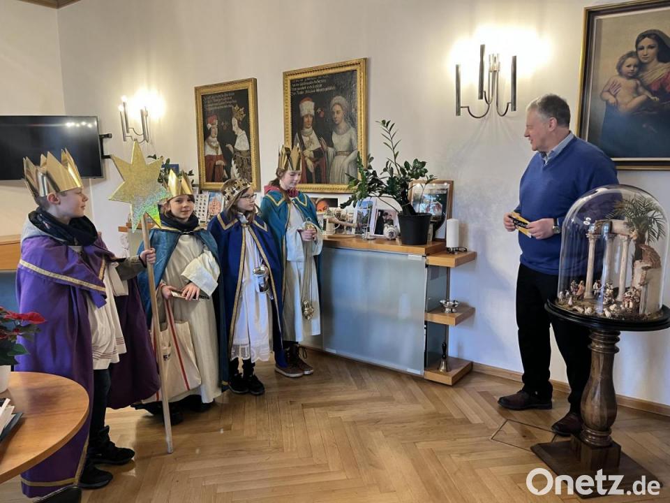Ein interessanter Nebenaspekt geriet dabei fast etwas in den Hintergrund: Reisinger konnte mit den vier Jugendlichen, die ihn in seinem Dienstzimmer den traditionellen Segensspruch überbrachten, über etliche Aspekte der Tätigkeit als Sternsinger fachsimpeln. Der 58-jährige Kommunalpolitiker ist nämlich in seiner Heimatpfarrei St. Marien in Sulzbach-Rosenberg seit mehr als 40 Jahren selbst als Sternsinger unterwegs. Inzwischen ist die (meist neun- bis zehnköpfige) Truppe, mit der er die Sulzbacher am Fuße des Annabergs aufsucht und um Spenden bittet, durchgehend in einem Alter angelangt, in dem sie selbst den Begriff „Senioren-Sternsinger“ durchaus als angemessen empfindet.
