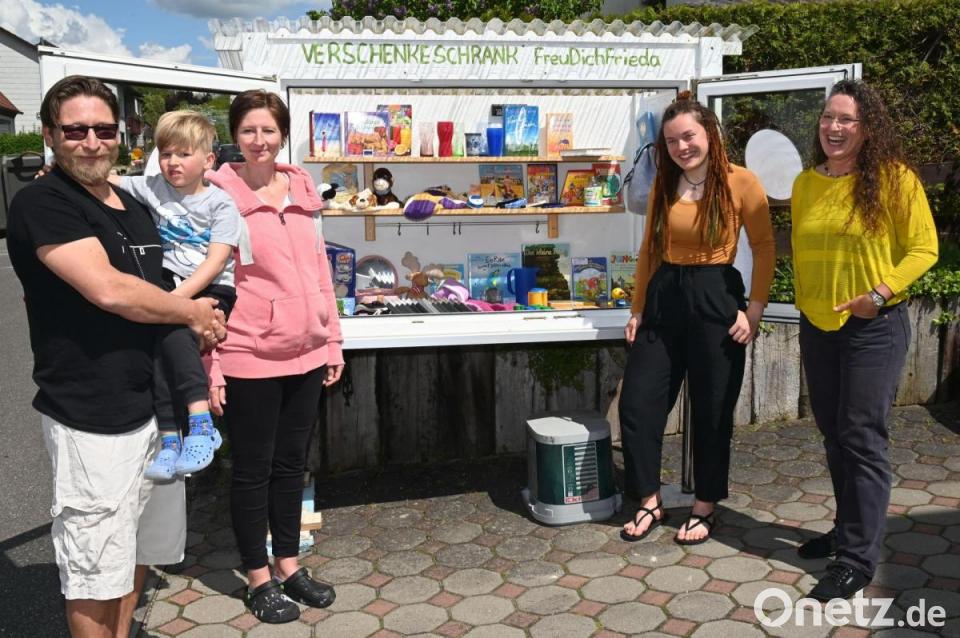 Der Verschenkeschrank, den Margit Haberberger und ihre Tochter Paula mitten im Corona-Lockdown erfunden haben, geht wieder auf Wanderschaft. Nachdem sich jeder, der wollte, von Ende Januar bis Mitte April bei den Haberbergers in der Steigerstraße am Wagrain bedienen konnte, zog der Schrank nach Alt-Eglsee zu Sabine Kreiner um. Seit Samstag ist der Kasten, den Paula Haberberger liebevoll "Frieda" getauft hat, zurück am Wagrain - bei Nina Bogner in der Bergmannstraße. Bei einem Spaziergang war die Mutter von Leopold und Frau von Tobias Bogner auf den Schrank aufmerksam geworden: "Das ist eine gute Sache. Das muss man unterstützen." Sie hinterließ einen Zettel und bat darum, "Frieda" bei sich aufstellen zu dürfen. Gesagt, getan: Seit Samstag bieten die Bogners alle Sachen, die sie nicht mehr benötigen, gratis an und wollen dafür keine Gegenleistung. Das ist das Prinzip des Schranks: Jeder darf sich nehmen, was er will. Niemand darf aber etwas hineinlegen. Etwa acht Wochen wird "Frieda" in der Bergmannstraße sein, bevor die Reise weitergeht. Wohin, ist noch unklar. Das müssen die Haberbergers noch entscheiden. Auf ihrer Interessentenliste stehen aktuell sieben Namen.