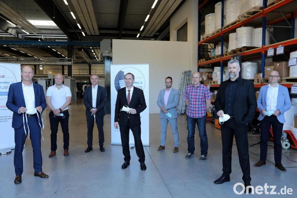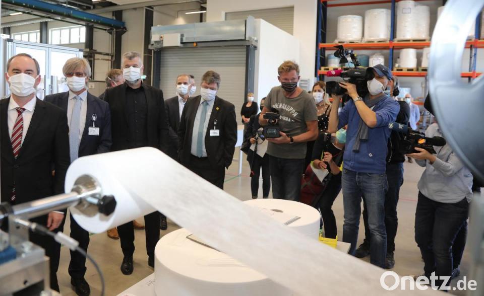 Das Vlies dafür kommt von Partner Nummer drei, der Sandler AG. Deren Vorstand Ulrich Hornfech erinnerte daran, dass der Verbund seinen Ursprung "vor zwei Monaten in einer Home-Konferenz" gehabt habe. "Ich konnte damals nicht glauben, dass ein Minister eine Rolle Vlies bei uns abholt", verriet er - und ebenso habe er es nicht fassen können, wie schnell daraufhin "eine Wertschöpfungskette in Bayern" aufgebaut werden konnte - innerhalb von zwei Monaten. In "dem bisschen Blech und weißer Watte" stecke tatsächlich noch viel mehr als nur eine Schutzmaske. Hornfech sprach von "großem Potenzial".