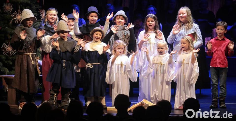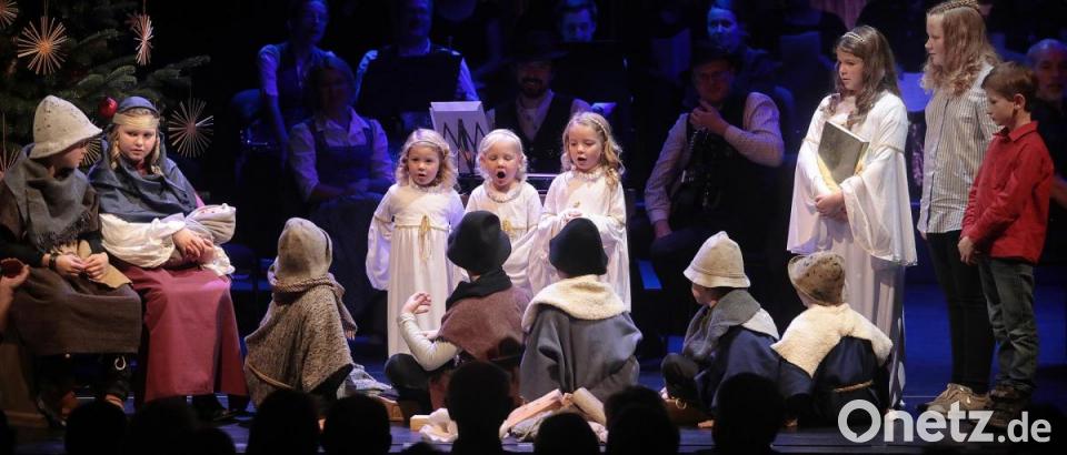 Mitten im Zentrum dieses draußen regnerischen Abends standen drinnen an der Rampe 13 Kinder aus Freudenberg. Dem Namen ihres Heimatdorfes machten sie alle Ehre. Denn was sie bei einem Krippenspiel aufführten, war Freude pur. Der Engel, das heilige Paar, die mit Filzhut auftretenden Hirten und drei ganz kleine himmlische Wesen mit dem Spruch: "Habt keine Angst, wir tun euch nichts!" Da stand Weihnachten wirklich vor der Tür.