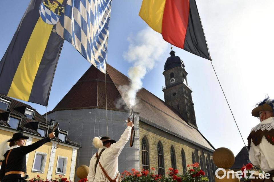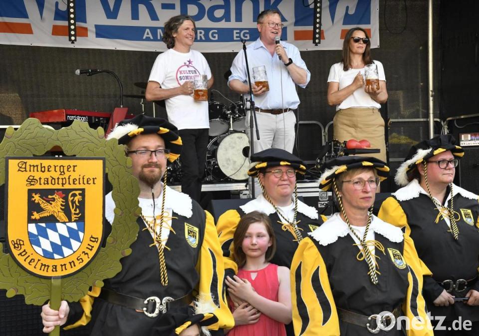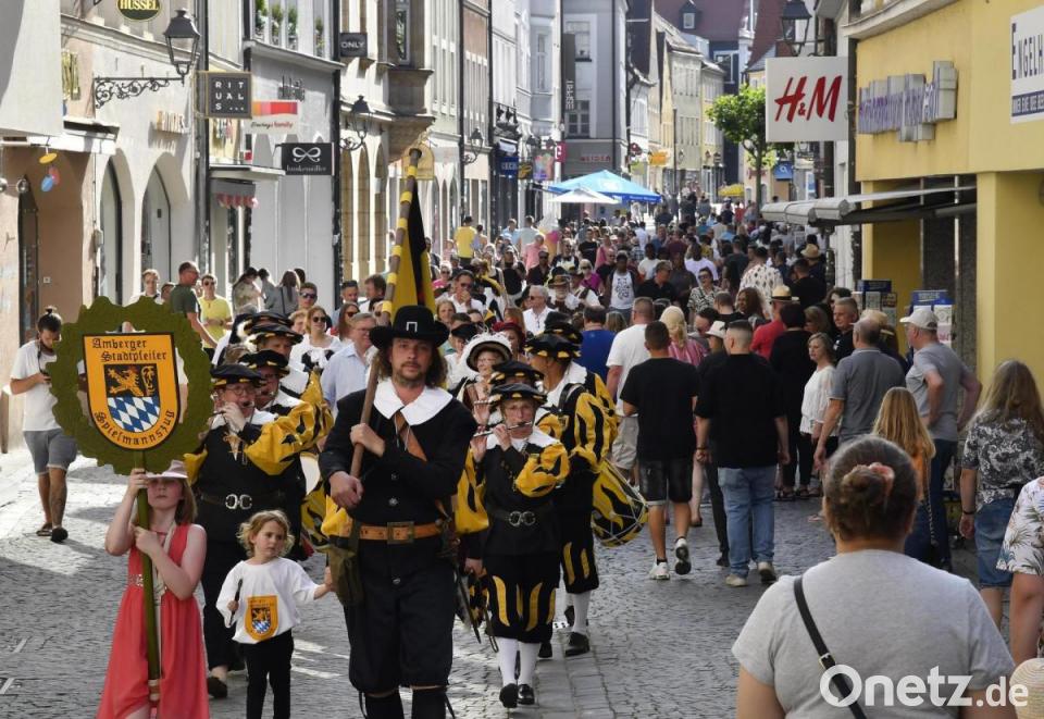 Zur offiziellen Eröffnung am Samstagnachmittag mit Oberbürgermeister Michael Cerny (hinten, Mitte) marschierten auch die Amberger Stadtpfeifer auf dem Marktplatz ein.