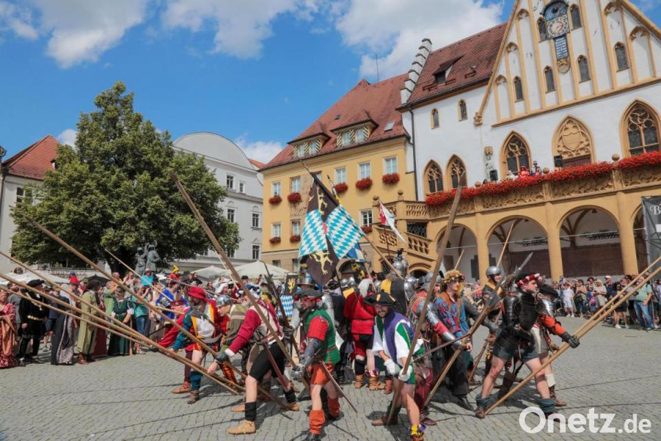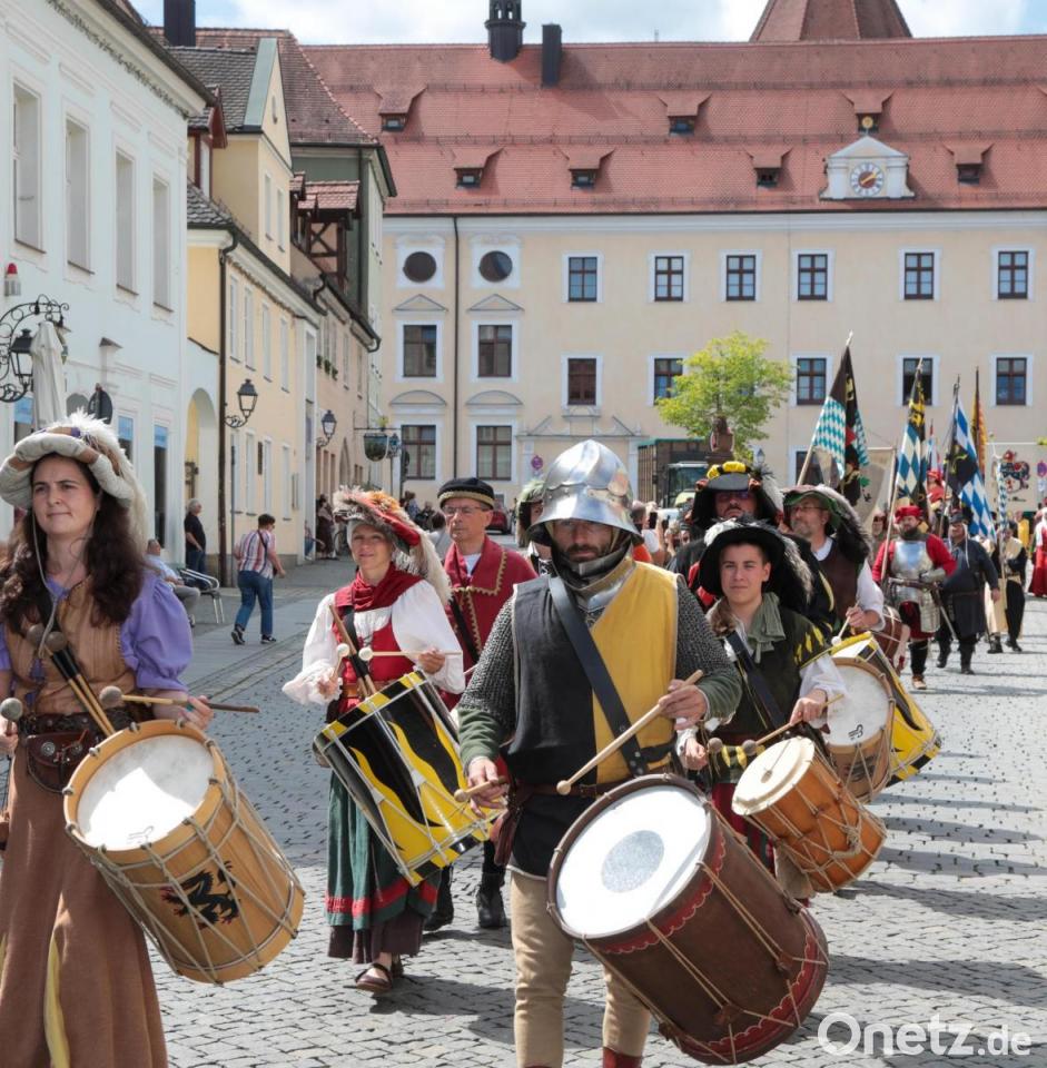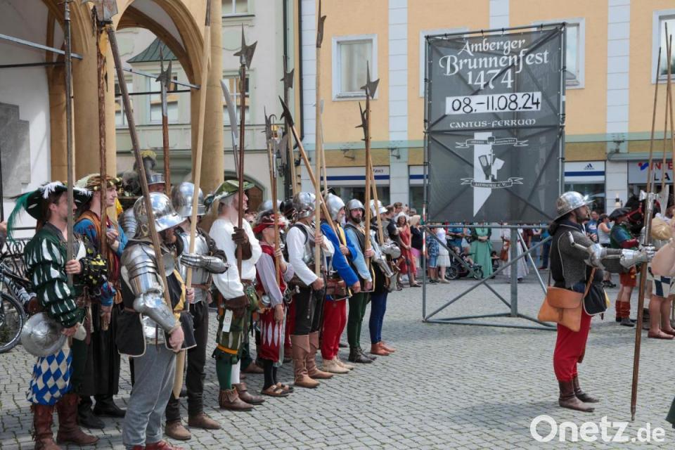 Bereits seit Donnerstag zieht der Geruch süßer und deftiger Speisen durch die Amberger Altstadt. Dazu gesellt sich immer wieder der Klang mittelalterlicher Musik mit treibenden Trommeln. Amberg feiert Brunnenfest. Nach dem Auftakt am Donnerstag konnten die Besucher am Freitag bereits tief in eine andere Zeit eintauchen. Es gab ein reges Markttreiben, sie konnten die Lagerlebenluft schnuppern, sich Schießvorführungen anschauen, beim Fußturnier der Ritter jubeln und bei der Waffenschau lernen, welche martialischen Instrumente den Soldaten früher zur Verfügung standen.