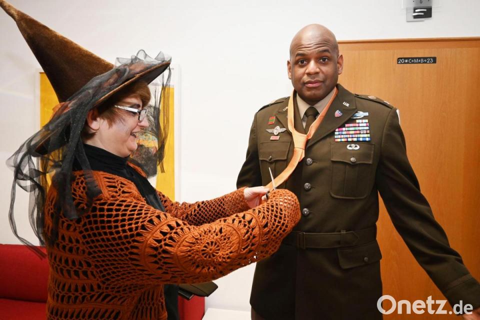 Colonel Kevin A. Poole war bereits vorgewarnt. Als der Kommandeur der US-Garnison Bayern am „unsinnigen Donnerstag“ gemeinsam mit seiner Frau Patricia von Rekowski und dem Pressesprecher der US-Army, Franz Zeilmann, zu seinem Antrittsbesuch bei Oberbürgermeister Michael Cerny ins Rathaus kam, hatte er sich sicherheitshalber einen zweiten Schlips umgebunden. Und es dauerte nach seinem Eintreffen auch keine Minute, schon war die Krawatte um einige Zentimeter kürzer. Die Hexen hatten wieder einmal zugeschlagen – und machten auch beim „Oberhexenmeister“ sowie Franz Zeilmann keine Ausnahme.