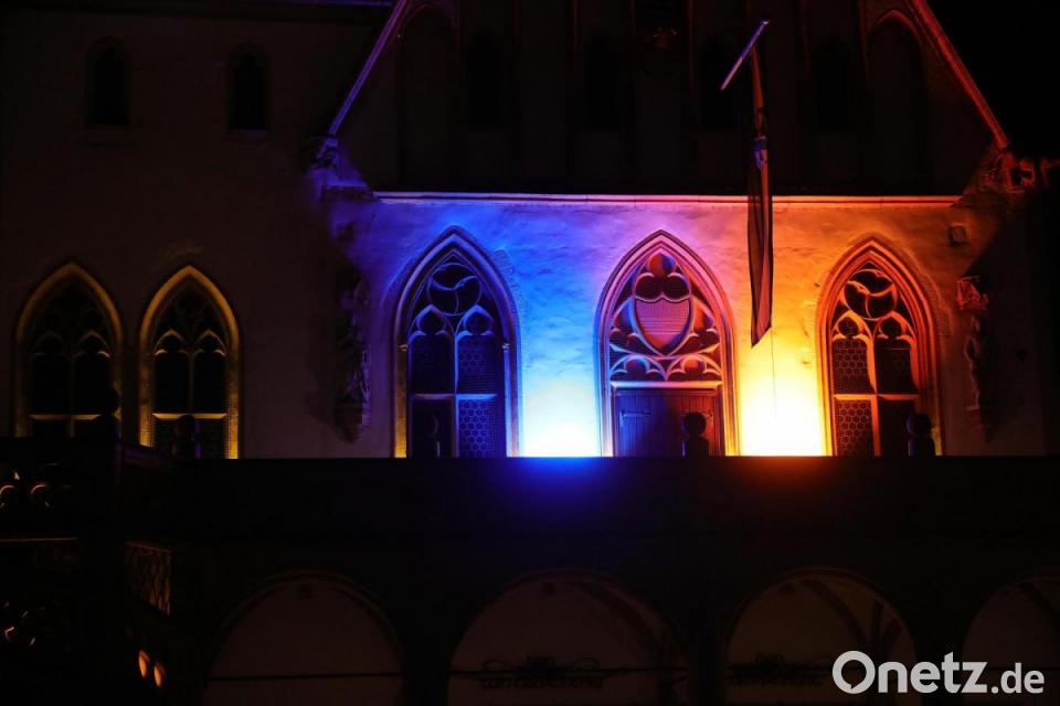 Amberger Rathaus leuchtet in ukrainischen Nationalfarben