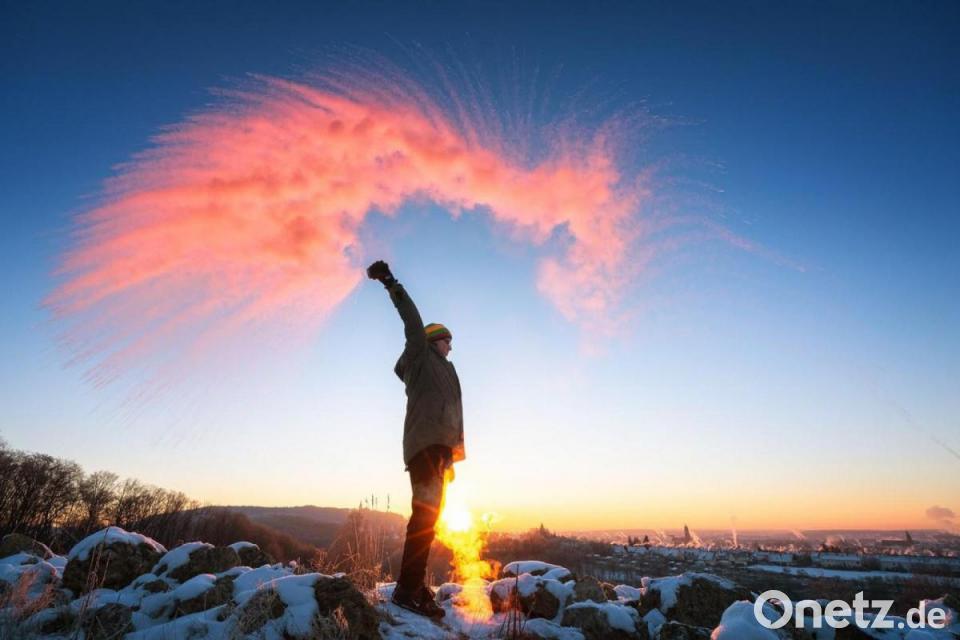 Romantischer kann ein Sonnenaufgang kaum in Szene gesetzt werden: Christian Ringer hat uns dieses wunderschöne Bild geschickt. Geschossen hat er es in der Früh des Valentinstages in Amberg. Verantwortlich für dieses fotografische Kunstwerk ist der sogenannte Mpemba-Effekt. Aus bestimmten physikalischen Gründen, die immer noch nicht vollständig erforscht werden konnten, gefriert heißes Wasser in eisiger Luft viel schneller als kaltes Wasser.