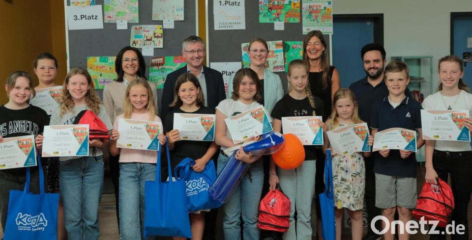 Das Kinderfest findet inzwischen schon zum 20. Mal statt. Mit rund 50 Mitmachständen und einem vollgepackten Bühnenprogramm soll sich dabei das ehemalige Landesgartenschau-Gelände von 11 bis 18 Uhr in eine Jugendarbeits-Meile verwandeln. Ambergs Dritter Bürgermeister Franz Badura, die Sponsorenvertreter (Stadtwerke Amberg und Sparkasse Amberg-Sulzbach), Susanne Augustin (Referatsleitung Jugend, Senioren und Soziales) und Florian Gebhardt (Kommunale Jugendarbeit Amberg) gratulierten den Gewinnern und überreichten ihnen ihre Preise. Den Hauptpreis für den ersten Platz sponserten wie schon in den vergangenen Jahren die Stadtwerke Amberg. Aber auch die anderen Gewinner gingen nicht leer aus. So gab es für die vier Zweitplatzierten Freizeitpakete von der Sparkasse Amberg-Sulzbach. Und auch die fünf dritten Plätze erhielten noch einen Preis.