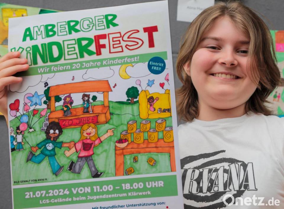 Unter dem Motto "20 Jahre Kinderfest – Das feiern wir!" haben Schüler der 3. bis 6. Klassen aus ganz Amberg Bilder entworfen. Unter den zahlreichen Einsendungen entschied sich die Jury am Ende für das Bild von Anni Ridinger vom Erasmus-Gymnasium Amberg: Es ziert dieses Jahr das Plakat für das Kinderfest und ist damit im gesamten Stadtgebiet und auch im Landkreis zu sehen. Es wirbt für das Amberger Kinderfest am Sonntag, 21. Juli.