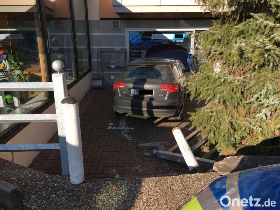 Der Landkreisbewohner war am Freitag gegen 13.30 Uhr von Amberg in Richtung Poppenricht auf der Sulzbach-Rosenberger Straße unterwegs. In Witzlhof staute sich auf Höhe der Kreuzung plötzlich der Verkehr. Drei Fahrzeuge voraus wollte jemand nach links in die Straße Zum Glaser abbiegen. Der 26-Jährige konnte zwar durch das Ausweichmanöver nach rechts eine Kollision mit den Autos vor ihm verhindern, schaffte es jedoch nicht, seinen Wagen zu stoppen. Es rollte über den Bürgersteig, riss eine Abgrenzung aus Metall um, fiel anschließend etwa einen Meter in die Tiefe und kam schließlich genau am Ladenfenster einer Fahrschule zum Stehen. Die Scheibe zerbrach.