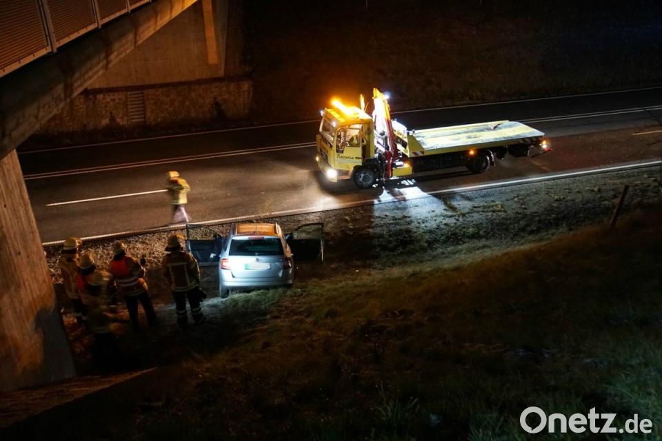 Nach ersten Angaben der Polizei in Amberg war der 81-jährige Fahrer eines silberfarbenen Skoda gegen 18 Uhr auf der Straße nach Schäflohe unterwegs, als er ohne Beteiligung eines anderen Verkehrsteilnehmers nach rechts erst über den Randstein und dann über den Grünstreifen fuhr und schließlich von der Straße abkam. Der Wagen rutschte die Böschung hinab zur B85, wo er im Straßengraben liegen blieb. Der Fahrer und seine 79-jährige Beifahrerin verletzten sich bei dem Unfall leicht. Die Straße musste zur Bergung rund 15 Minuten gesperrt werden.