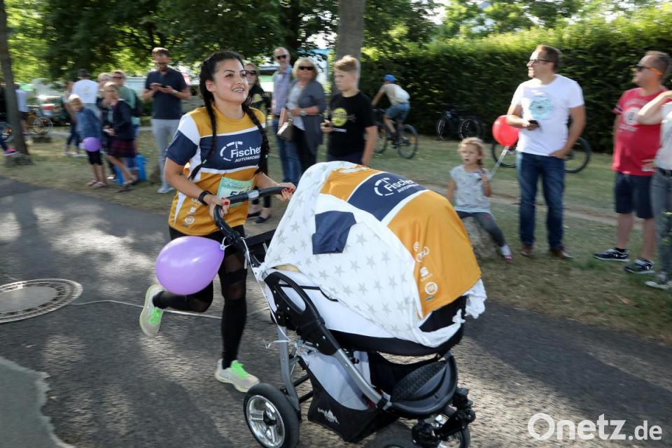Einer der jüngsten Teilnehmer beim Amberg-Sulzbacher Firmenlauf war fünf Monate alt, die älteste Starterin 77 Jahre. Auch Jenny Wurster vom Autohaus Fischer ging mit ihrem Nachwuchs an den Start. Sie schob die ganze Strecke den Kinderwagen mit Baby vor sich her. Mit einer Zeit von 30 Minuten und 9 Sekunden erreichte sie Platz 167. So eine fitte Mama zu sein, und dabei auch noch strahlend zu lächeln, ist eine super Leistung. Daumen hoch!