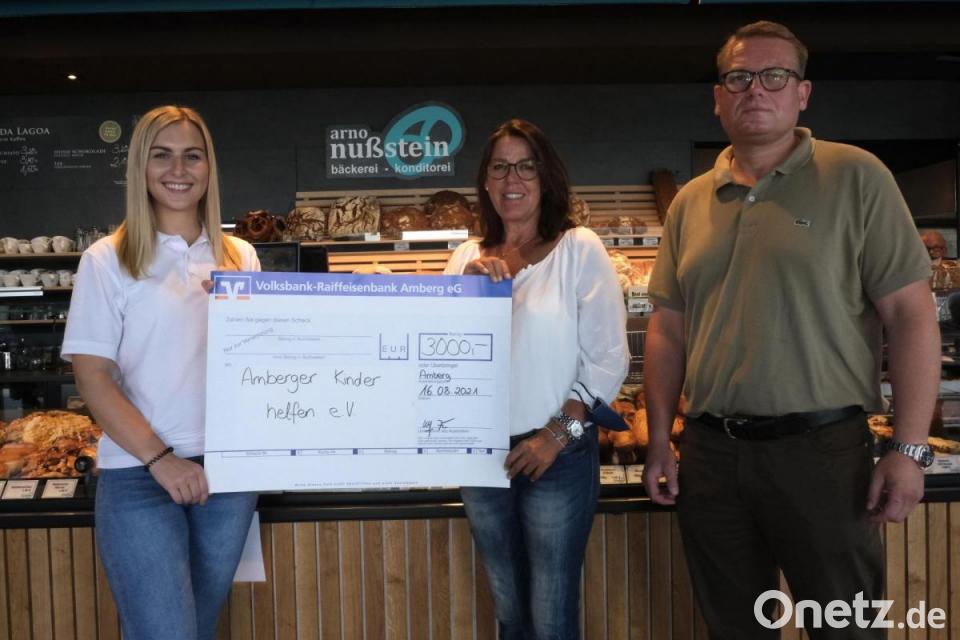 Zur Eröffnung der neuen Zentrale der Bäckerei Nußstein in der Fuggerstraße gab es gegen eine freiwillige Spende Kaffee und Kuchen sowie kleine Brotzeiten. Firmeninhaber Ulf Fischer übergab nun den von ihm auf 3000 Euro aufgestockten Erlös an Katharina Ostermann, Zweite Vorsitzende des Vereins „Amberger Kinder helfen“. Fischer würdigte bei der Spendenübergabe das Engagement des Vereins. Dessen Zweck ist in erster Linie die Förderung des sozialen Engagements von Kindern, aber auch die Unterstützung von Kindern und hilfsbedürftigen Menschen durch einzelne Projekte mit einem örtlichen Schwerpunkt im Bereich der Stadt Amberg und des Landkreises Amberg-Sulzbach, wie Ostermann kurz ausführte.