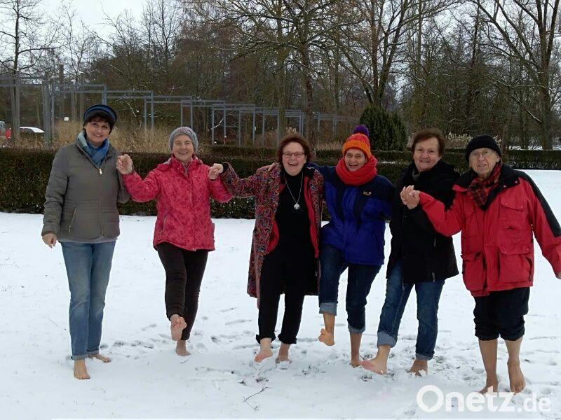 Hensel: „Das Schneegehen darf man übrigens auch mit kalten Füßen machen, weil auch kalte Füße auf einen sehr starken Kältereiz reagieren.“ Die Füße werden laut der Vereins-Chefin dadurch warm und besser durchblutet. Der Kreislauf werde angeregt. Vor dem Schlafengehen wirke es als gute Einschlafhilfe. Die Vorsitzende: „Man geht etwa 10 bis 20 Sekunden durch den weichen Schnee, bis der Kälteschmerz eintritt.“ Danach sollten aber sofort warme Wollstrümpfe angezogen werden. Oder noch besser: „Gleich ins Bett gehen.“ Es sei bewiesen, dass in Maßen genossener Temperaturwechsel die körpereigene Abwehr stärkt. Mit anderen Worten: „Schnee ist eine kostenlose und praktische Wellness-Oase, wenn man ihn nur richtig zu nutzen weiß.“