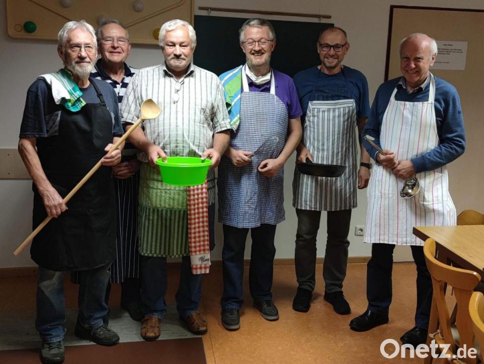 Den Teilnehmern soll geholfen werden, sich in der Welt der Küche und des Kochens auch ohne die verstorbene Partnerin zurechtzufinden. Aktuell sind es mit Walter (71 Jahre), Engelbert (54 Jahre), Bernhard (76 Jahre), Wolfgang (57 Jahre) und Gerhard (75 Jahre) fünf Teilnehmer, die sich seit dem 10. Oktober an insgesamt sechs Abenden mit Georg Franz Fröhler im Pfarrheim der Pfarrei Hl. Familie treffen. Gekocht und gebacken wurden und werden schmackhafte Gerichte und Kuchen, die jeder problemlos nachkochen oder backen kann.