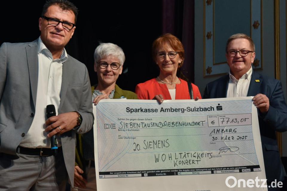 Zum 20. Mal trat das Siemens-Orchester im Amberger Stadttheater auf, um mit den Einnahmen Gutes zu tun – und dem Publikum klassische Musik nahezubringen. Vor dem Konzert wurden die Spenden übergeben. Bürgermeister Martin Preuß dankte der Siemens-AG und dem Orchester unter der Leitung von Markus Elsner für das seit 20 Jahren anhaltende Engagement für die gute Sache. Außer im Raum München tritt das Siemens-Orchester nur im Stadttheater Amberg auf – ein Zeichen der Wertschätzung für den großen Siemens-Standort in der Oberpfalz. Hans-Peter Scharl, Sprecher der Betriebsleitung von Siemens Amberg, dankte ebenfalls dem Orchester, vor allem aber dem Publikum, denn die von den Zuhörern eingenommenen Eintrittsgelder machten die Spende an wohltätige Organisationen möglich. Wie üblich, wurden wieder andere Empfänger ausgewählt als in den Vorjahren, um die Unterstützung etwas zu streuen. Die Summe der heuer überreichten Spenden beträgt exakt 7.713,05 Euro und geht an das Moses-Projekt der Donum-Vitae-Beratungsstellen und an den Kinderschutzbund Amberg-Sulzbach. Ute Schieder, Leiterin der Donum-Vitae-Beratungsstellen in Amberg, Schwandorf und Sulzbach-Rosenberg, und Brigitte Breitfelder, Vorsitzende des Kinderschutzbunds Amberg-Sulzbach, nahmen den symbolischen Scheck entgegen.