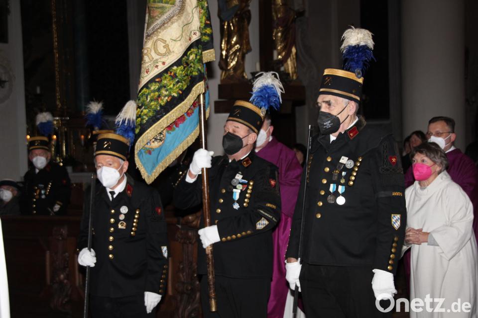 Mit ihrer Fahnenabordnung zogen die Bergknappen in die Georgskirche. In seiner Predigt ging Pfarrer Markus Brunner auf das Leben der heiligen Barbara als Schutzpatronin der Bergleute und auf deren Botschaft ein. Sie zähle zu den Vierzehn Nothelfern. Ihr Verhalten im Angesicht von Verfolgung und Tod gelte als Symbol der Wehr- und Standhaftigkeit im Glauben. Da Barbara auf der Flucht vor ihren Verfolgern in einem Felsen Zuflucht gefunden habe, ergebe sich eine Verbindung zur unterirdischen Welt des Bergbaus. Deshalb sei sie die Patronin der Bergleute.