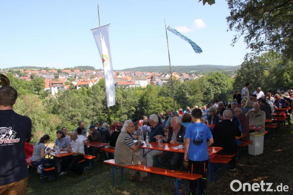 Die Glocken der Wallfahrtskirche auf dem Johannisberg läuteten am Samstagnachmittag nicht nur das zweitägige Hüttenfest ein, sondern nach ergiebigem Regen auch herrliches Sommerwetter. Eine große Besucherschar fand sich bereits am Nachmittag beim Freudenberger Stützpunkt ein, um in geselliger Runde unterhaltsame Stunden in idyllischer Natur und mit Musik der Gruppe "Winterleitn" aus Rottendorf zu erleben. Die Musiker verzichteten bewusst auf Verstärker, um den Besuchern eine gepflegte Unterhaltung zu ermöglichen.