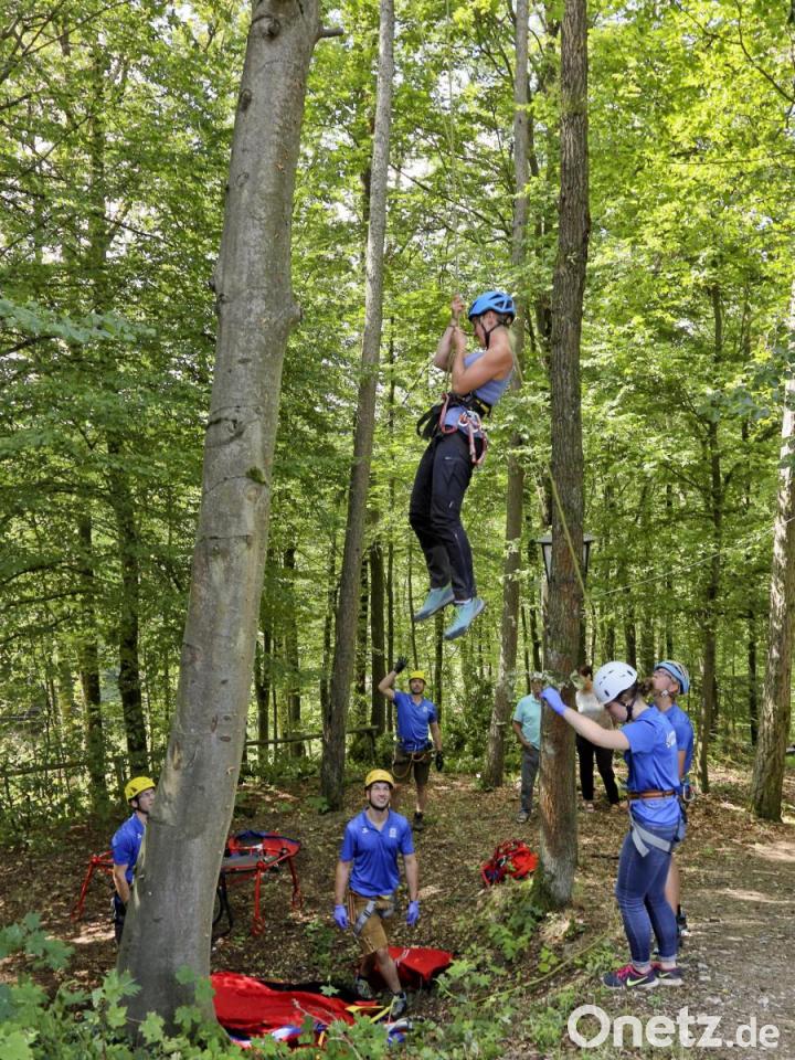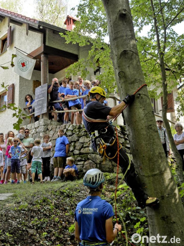 Das Klettern wurde besonders gut von Jugendlichen und "Junggebliebenen" angenommen. Spannend wurde es am Nachmittag, als die aktiven Einsatzkräfte die Rettung eines Fallschirmspringers aus einem Baum vorführten.