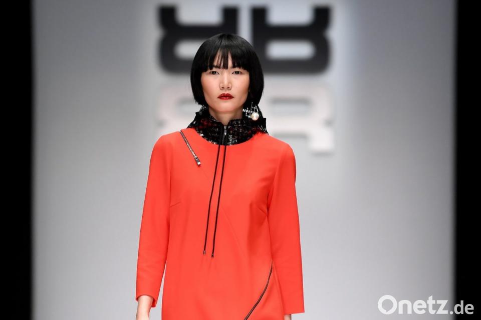 Den größten Starrummel gab es, fast schon traditionell, bei Riani. Neben Natalia Wörner, Schauspielerin und Partnerin von Bundesaußenminister Heiko Maas, kamen Promis wie Jana Ina Zarrella, Jenny Elvers und Hardy Krüger junior zu der Show am Mittwochabend. Bevor es in Sachen Mode losging, ließen Künstler eine riesige leuchtende Figur zu Madonnas „Vogue“ über den Laufsteg tanzen. Das Familienunternehmen aus Baden-Württemberg zeigte viel Leder und glänzende Bronzetöne an den Models.