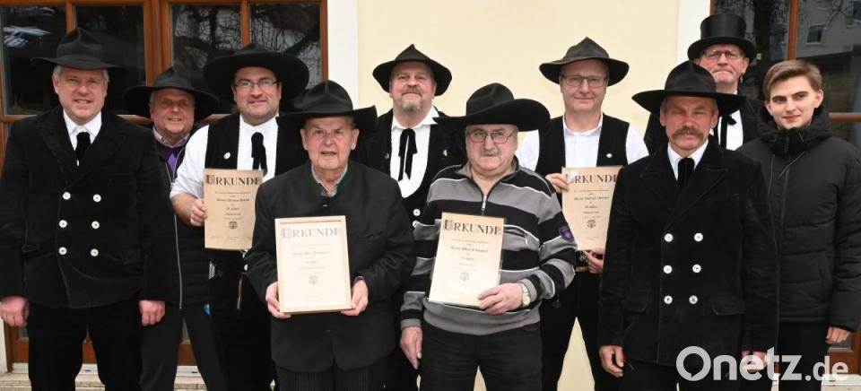 Vereinstreue nehme immer mehr ab, bedauerte Donhauser, daher schätze er Gesellen und Meister, die „ihrem“ Gesellenverein über Jahrzehnte die Treue halten. Seit zehn Jahren gehören Alexander Abolentsev und Günter Brumeißl dem Gesellenverein an, 20 Jahre sind es bei Thomas Peichl. Auf drei Jahrzehnte bringen es Andreas Drexler, Konrad Meier, Stefan Neger, Albert Schanderl und Christian Vogl. Eine besondere Ehre sei es für ihn, so der Vereinsvorsitzende, seinem Onkel Hans Donhauser die Ehrenurkunde für 70-jährige Mitgliedschaft im Verein der Zimmerleute und Schreiner Amberg zu überreichen, Hans Donhauser sei auch Ehrenmitglied des Gesellenvereins. 85 Jahre wird Hans Donhauser in diesem Jahr alt.