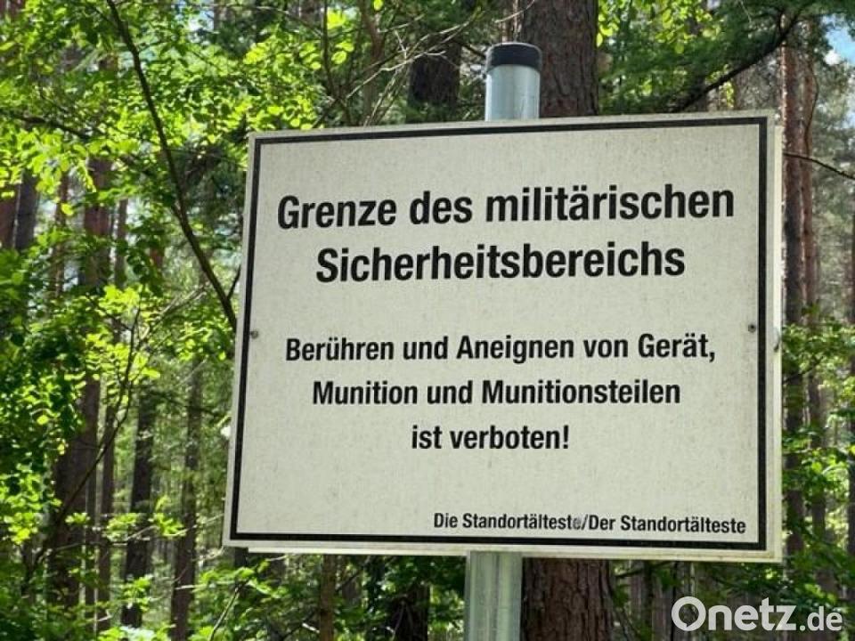 Im gesamten Bereich des Standortübungsplatzes bestehe deshalb die Gefahr, Blindgänger und Munitionsteile aufzufinden. Angesichts dieser "erhöhten Gefährdung für Leib und Leben" warnt der Standortälteste davor, "gefundene Gegenstände zu berühren, aufzunehmen, in ihrer Lage zu verändern, eingedrungene Geschosse und Zünder freizulegen oder gefundene Munition oder Munitionsteile mitzunehmen".