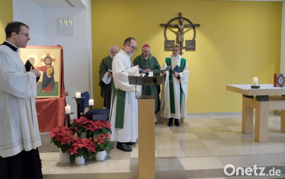 Höhepunkt beim Gottesdienst in der Kapelle des Klinikums – den die Patienten per Liveübertragung mitverfolgen konnten - war dieses Mal nicht nur der Besuch des Bischofs, sondern auch die Segnung der neuen Ikone „Jesus und Menas“. „Ich war auf der Suche nach einem Symbol für unsere Krankenhausseelsorge. Ich selbst male hin und wieder solche Heiligenbilder und da bin ich auf die Darstellung von Christus und dem Heiligen Menas gestoßen“, erzählt Diakon und Klinikseelsorger Peter Bublitz. „Zu sehen ist Christus wie er seinen Arm um den Heiligen Menas legt, er ist Wegbegleiter und genau dieses Gefühl soll die Ikone auch unseren Patienten und Angehörigen vermitteln.“ Die Ikone war das Werk einer Kunststudentin aus Belgrad, die gleichzeitig auch deren Abschlussarbeit war.