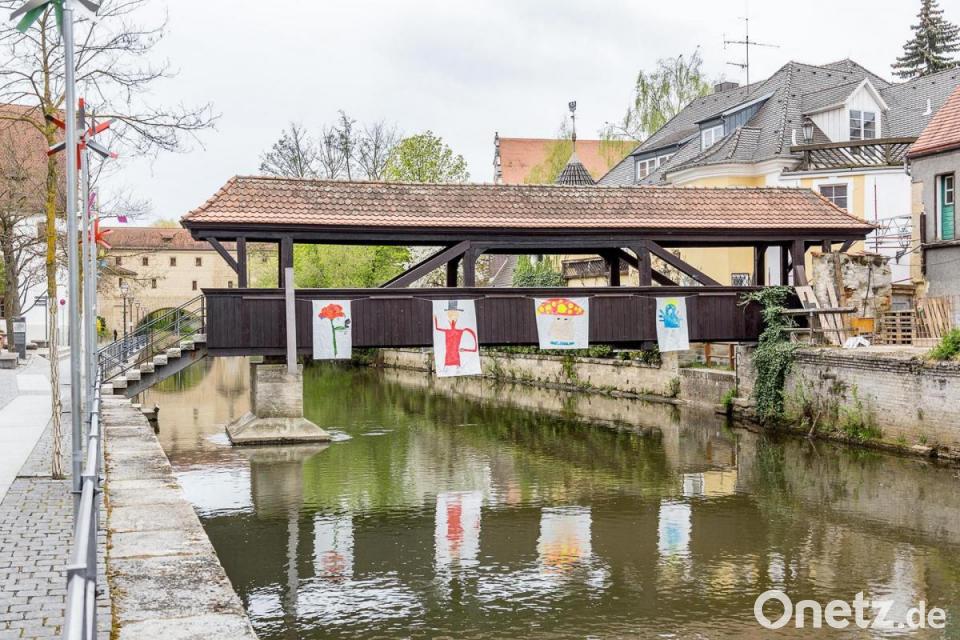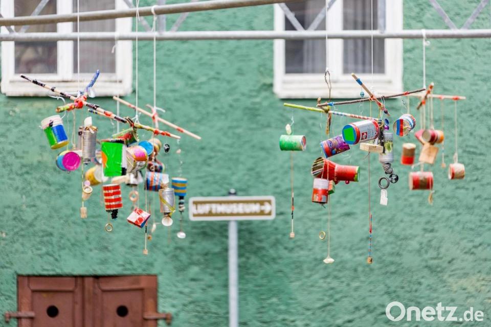 Fast ein wenig Biennale-Feeling kommt auf beim Gang durch die Altstadt mit dem Ausstellungsplan in der Hand: über gedeckte Brücken, enge Gassen, durch die breite Fußgängerzone und quer über den Marktplatz bis zum Ringtheater, dem historischen Kino Ambergs - auf der Suche nach den flatternden Wimpeln und bemalten Geister-Fahnen, den beinahe versteckten Plastiken in Mauernischen und auf Vorsprüngen, den Bauzaunplanen mit großformatigen Comics und Fotografien, der in der Vils verankerten Kunst-Boje, den am Gerüst baumelnden Klangobjekten oder den Druckgrafiken und zarten Papierobjekten in Schaufenstern oder den Auslagen einer Buchhandlung. Während die Exponate im öffentlichen Raum zugänglich sind, können seit dem 13. Mai nach gesunkener Inzidenz die Ausstellungsobjekte auch im Luftmuseum und in der Städtischen Galerie Alte Feuerwache (mit Terminvereinbarung, Kontaktnachverfolgung und FFP2-Maske, ohne Test) besucht werden. Die Ausstellung ist Teil des sechsten Bayerischen Jugendkunstschultags "Frei-Raum Kunst", in dessen Rahmen außerdem ein digitaler Fachtag mit 130 Teilnehmer aus dem Bundesgebiet stattfand.