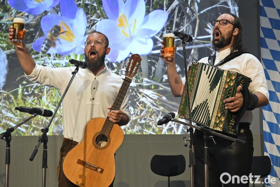Dann aber hieß es: "Bühne frei!" - zunächst für Da Wampert & da Boartert, die mit "Hört euch die Musi an, wie die schö aufspieln kann" so richtig zünftig loslegten. Sie ließen keinen Zweifel daran, was für gute Musikanten wichtig ist: "Wir ham an Durst, bitte zwei Bier!" Darauf mussten sie nicht lange warten und brachten mit "Prost auf die schnellste Bedienung im Landkreis" schon mal Stimmung in den Saal. Auch ihr zweites Lied war von nahrhafter Natur: "Wir sind Sänger, wir sind durstig und Hunger ham mer auch, und wir leben vom Applaus" - mit diesem Einstieg war schon vorgegeben: Es wird bodenständig und lebensnah.