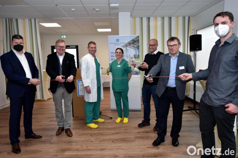 Die erste Operation im neuen Ambulanten OP-Zentrum (AOZ) war schon auf Montag, 4. April, terminiert. Corona-bedingt musste die Premiere zwei Wochen nach hinten verschoben werden. Aber zumindest offiziell konnte das neue Aushängeschild des Klinikums St. Marien am Freitag eingeweiht werden - wenn auch nur teilweise besichtigt. Die OP-Säle waren bereits steril. Auf dem ehemaligen Besucherparkplatz des Krankenhauses entstand zwischen Mai 2021 und März 2022 ein Gebäude in Modulbauweise, in dem künftig rund 4000 ambulante Operationen pro Jahr stattfinden werden. Über 6,6 Millionen Euro hatte der Bau inklusive Rückbau des Parkplatzes und Außenanlagen gekostet.