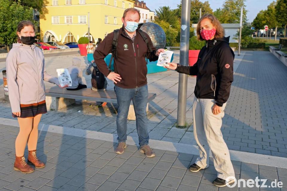 Im Rahmen der Europäischen Mobilitätswoche hielten die Koordinatorin für kommunale Entwicklungspolitik, Heike von Eyb, und die Klimaschutzmanagerin, Corinna Loewert, der Stadt Amberg für fünfzig Helden der Alltagsmobilität kleine Brotzeittüten bereit. Am Bahnhofsvorplatz wurden diejenigen belohnt, die mit Bus oder Bahn zur Arbeit oder Schule kamen.