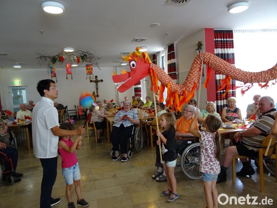 Ein Büfett lud zum Probieren ein. Auch Hühnernudelsuppe, Ente süß-sauer, gebackene Bananen, Reiswein und Frühlingsrollen wurden im passend dekorierten Speisesaal serviert. Das Ehepaar Shidong Tang und Yun Chao aus China organisierte das Programm. Bürgermeisterin Brigitte Netta führte mit ihren "SieKids" ein Drachenspiel auf. Taiji-Lehrer Thomas Huber gab mit einem Bildervortrag Einblicke in die Kultur des Landes und zeigte eine Taiji-Vorführung.